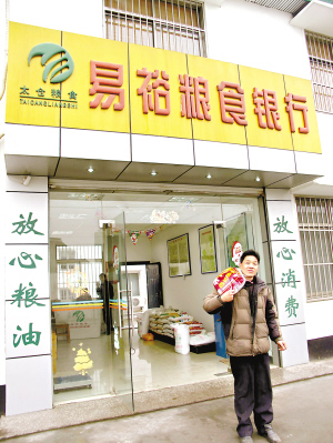 易裕糧食銀行離老陳的家很近。看到老陳前來(lái),工作人員熱情地向他打著招呼。老陳拿出存折,表示要換一袋10公斤的當(dāng)?shù)貥?biāo)準(zhǔn)大米。工作人員接過(guò)存折,用筆在存折上記錄下這筆交易,在扣除10公斤大米后,迅速地計(jì)算出老陳結(jié)余的存糧。 顯然,老陳對(duì)這樣的存取交易規(guī)則已經(jīng)了然在胸。糧食銀行里還擺放著其他品牌的大米。老陳知道,他也可以換取這些品牌的大米,只不過(guò)要貼上一些差價(jià),他還可以在這里換取食用油以及面粉。 類似的存取交易,每天都會(huì)在這間位于江蘇省太倉(cāng)市城廂鎮(zhèn)南郊的糧食銀行發(fā)生。 自稱“老糧食人”的周元?jiǎng)资沁@家糧食銀行的“行長(zhǎng)”,太倉(cāng)市易裕糧油購(gòu)銷有限公司的負(fù)責(zé)人。他對(duì)記者強(qiáng)調(diào),易裕糧食銀行不是一間真正的銀行,它只是其公司的服務(wù)窗口。同樣的說(shuō)法還來(lái)自于太倉(cāng)市糧食局辦公室主任徐仲良。徐仲良告訴記者,糧食銀行并非一家法人實(shí)體,它只是糧油購(gòu)銷企業(yè)下屬的服務(wù)窗口。 不過(guò),銀行的一些概念在這里得到引用,比如“儲(chǔ)戶”、“存折”、“行長(zhǎng)”等等。周元?jiǎng)渍f(shuō),他之所以選用“糧食銀行”這個(gè)名字,是因?yàn)槁犉饋?lái)通俗易懂,也希望借用銀行一些簡(jiǎn)單的運(yùn)作流程,用銀行的理念管理糧食,吸引農(nóng)戶把口糧存入糧食銀行。