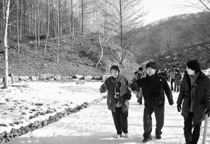 在這其中,歷經(jīng)40余載從枯山變成茂密森林的韓國忠州人登山“SK人才之林”給學生們留下了極其深刻的印象。 40年前,韓國的經(jīng)濟開始起飛之時,人登山的植物受到了大面積的破壞,土壤直接暴露在陽光和暴雨之下,水土流失十分嚴重。在一片質(zhì)疑和嘲笑聲中,韓國SK集團會長崔鐘賢帶領(lǐng)著員工,在光禿禿的忠州人登山上種下一棵棵小樹苗,留下了堅定的腳印和希望。 40年后,故人已去,曾經(jīng)荒蕪的人登山變成了茂密的森林。“SK集團通過這樣的活動既培養(yǎng)了員工關(guān)愛自然、保護環(huán)境的珍貴品質(zhì),也通過每年林業(yè)帶來的收益,包括果實、木材的收益設(shè)立獎學金,資助優(yōu)秀學生讀書,為國家培養(yǎng)了人才!盨K集團相關(guān)負責人講述的有關(guān)“SK人才之林”的感人故事吸引了大家。 2月2日,我們一行從首爾出發(fā),1個多小時后來到韓國忠州人登山的“SK人才之林”。人登山位于韓國北部的天登山和南部的地登山之間。這里剛剛下過雪,環(huán)望四周,一片雪白;一排排的參天大樹,樹干沖向天空,在陽光的照耀下舒展著枝杈。迎面吹來陣陣細風送來清新的空氣!安豢上胂筮@滿山的樹林都是人工植栽的!”學生們一陣驚嘆。