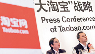 | 淘寶網總裁陸兆禧(右)在新聞發(fā)布會上說,50億元投資將用于淘寶的人才引進、網商孵化和網絡零售生態(tài)圈建設等方面,為電子商務提供基礎建設。CFP圖片 | 昨日(10月8日),淘寶網總裁陸兆禧在北京宣布,為進一步推進“大淘寶”戰(zhàn)略,阿里巴巴集團未來5年對淘寶網投資50億元人民幣。 此次宣布的50億元投資中,包括列入阿里巴巴預算的30億元投資,以及于7月份宣布的20億元追加投資。這是繼今年9月初淘寶網和阿里媽媽整合、淘寶網開放平臺計劃之后,阿里巴巴集團對其網絡購物板塊進行的最大手筆的推進計劃。