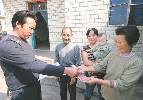 資料圖片:10月14日上午,安徽省銅陵縣順安鎮(zhèn)榮光村,種植大戶胡忠慶上門向農(nóng)民兌付土地流轉(zhuǎn)合同租金。