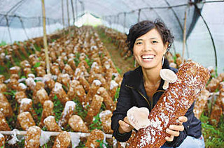 四川省華鎣市高興鎮(zhèn)高興村的農(nóng)民王偉,正喜滋滋地展示她在流轉(zhuǎn)租賃的土地上培植的食用菌。CFP 供圖