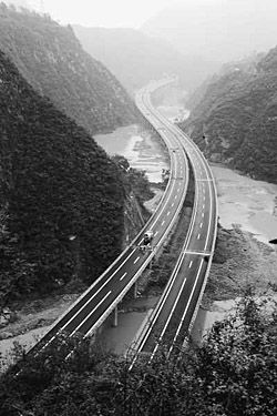 | 圖為建設(shè)中的西安至安康高速公路柞水段。新華社發(fā) | “今年中央新增1000億元的投資中,約有100億元用于公路建設(shè)!