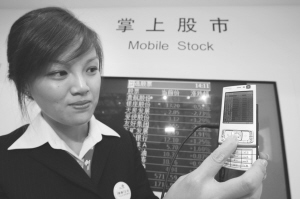 | 11月8日,中國聯(lián)通展示了基于WCDMA網(wǎng)絡(luò)的3G手機炒股服務(wù)。CFP圖片 | 昨日(11月18日),受3G牌照即將發(fā)放的消息刺激,A股市場中包括中國電信和中興通訊在內(nèi)的大多數(shù)電信股悉數(shù)漲停。申萬信息設(shè)備行業(yè)指數(shù)漲幅達到8.46%,位居首位。 業(yè)內(nèi)人士認(rèn)為,向運營商發(fā)放3G牌照的各項條件已經(jīng)具備,而三大運營商3G網(wǎng)絡(luò)建設(shè)三年預(yù)計將有超過2000億元的投資,這將對通信設(shè)備商及部分手機制造商形成利好。
