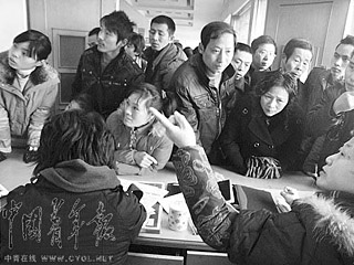 杭州市蕭山區(qū)勞動力市場擠滿了找工作的返城農(nóng)民工。李劍平