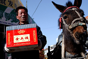在甘肅的不少地方,農(nóng)民們要趕著驢車到鎮(zhèn)上置辦年貨。本報(bào)記者 聶建江