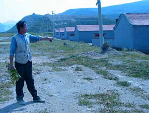 新村共建有184套共484間房,還蓋有一座兩層樓作學(xué)校,以及10間村委會(huì)辦公室,基本可以滿足村民需要。然而,新村房子建成近一年多,至今空無(wú)一人,村民誰(shuí)都不愿入住。 記者調(diào)查發(fā)現(xiàn),村民拒絕入住的最大原因是認(rèn)為新村的房子是“危房”!皦Φ念A(yù)制板不合格,”村民謝富說(shuō),“我一直在那兒打工,我親手放過(guò)預(yù)制板,因?yàn)閴Σ惶苷,預(yù)制板有的放得長(zhǎng),有的搭得短,24公分的墻每塊預(yù)制板只搭上去三公分,如果一有地震或下雨多,肯定會(huì)塌。” 村民溫金說(shuō),蓋房子本來(lái)該用石頭打地基,這樣房子才結(jié)實(shí)?尚麓宓姆孔又皇窍峦谝幻祝缓蟀焉匙邮^扔到溝里,地基根本沒(méi)夯實(shí)!吧w房的磚不少是廢磚,一打就碎,這樣的房子誰(shuí)敢。俊