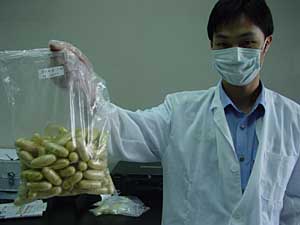廣州白云機(jī)場(chǎng)海關(guān)關(guān)長(zhǎng)畢列佳介紹說(shuō),這些毒販攜帶的毒品海洛因外包裝都經(jīng)過(guò)機(jī)械化包裝和專業(yè)化處理,外形規(guī)則呈橄欖狀橢圓型,包裝緊密堅(jiān)硬,且耐腐蝕性非常強(qiáng),能在人體內(nèi)數(shù)日不會(huì)破損。并且根據(jù)不同人種的耐受力制造成每粒7克至15克不等的毒品。