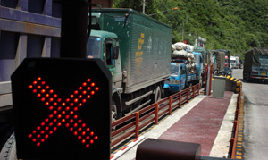 川陜公路總長僅百余公里的316國道陜西省留壩路段(包括輔道),設(shè)置了3個收費(fèi)站和1個超限檢測站。其中一個收費(fèi)站和超限檢查站的距離不足5公里。這個路段是我國西北和西南的貨運(yùn)大通道的咽喉,每天有數(shù)千輛大貨車往返其間。司機(jī)反映這里每天都會出現(xiàn)大量貨車的擁堵現(xiàn)象,有時導(dǎo)致數(shù)公里路段癱瘓。新華社記者 陶明 攝