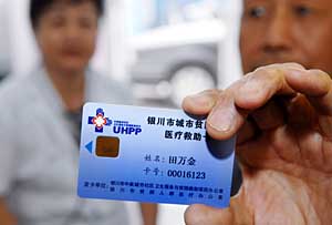 | 城市低保戶田萬金正展示剛領(lǐng)到的城市貧困人口醫(yī)療救助卡。近日,銀川市城市貧困人口醫(yī)療救助卡開始發(fā)放,全市4萬多名城市低保戶將逐步實(shí)現(xiàn)門診、購藥、住院等醫(yī)療救助“一卡通”服務(wù)。新華社記者