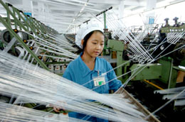11月29日,工人在福建潯興拉鏈科技股份有限公司生產(chǎn)車間工作。 近年來,福建省晉江市充分發(fā)揮沿海區(qū)域優(yōu)勢,大力發(fā)展民營經(jīng)濟。晉江市現(xiàn)有一般納稅人資格企業(yè)11953家,個體工商戶12936家,形成了以紡織服裝、制鞋、陶瓷石材、食品、輕工玩具等五大傳統(tǒng)產(chǎn)業(yè)和車輛機械、精細(xì)化工、生物制藥、紙制品、新型材料業(yè)等五大新興產(chǎn)業(yè),2007年前三個季度,全市完成生產(chǎn)總值413.52億元,同比增長15.5%,財政總收入44.69億元,同比增長25.9%。新華社記者:張國俊