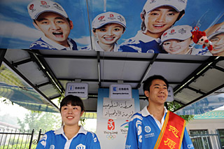 | 北京奧運(yùn)會(huì)城市志愿者成為展示北京美好形象的靚麗名片。新華社記者 沙達(dá)提