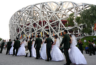 | 奧運(yùn)后的國(guó)家體育場(chǎng)“鳥(niǎo)巢”成為許多大型活動(dòng)的首選場(chǎng)地。圖為日前在這里舉辦的一場(chǎng)集體婚禮。新華社發(fā)(吳長(zhǎng)青
