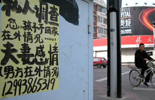《民事訴訟法》規(guī)定誰主張誰舉證,用老百姓的話講就是需要自己拿證據(jù),這使民間調(diào)查機構在龐大的市場需求下一步步孕育、催生出來。然而如今的許多私家偵探機構為了獲得暴利,不得不在法律的邊緣行走。而關于私家偵探的存在是弊大于利、還是利大于弊的爭論始終沒有間斷。 11月中旬,記者在沈陽市私家偵探機構比較集中的和平區(qū)調(diào)查時,碰巧遇到一位從事“調(diào)查員”工作時間較長的徐某。談及“業(yè)務”,他把私家偵探的業(yè)務歸納為民事和商業(yè)兩類。民事包括婚外戀調(diào)查、親子鑒定和尋人等。但現(xiàn)在最熱門的是幫顧客調(diào)查上司的愛好和隱私,掌握了上司的這些把柄,很多人就可以“心里有底”。 徐某還向記者透露,這個行業(yè)雖競爭殘酷,卻可獲暴利。比如婚外情調(diào)查,雖然起步價就要1萬元,但許多人還是趨之若鶩,最高一次有人出價10萬元。 “至于商業(yè)調(diào)查這一塊,以討債的居多,也有不少人花大錢要買工程或項目招投標的底價和對手價格之類。但法律有規(guī)定,這種行為最高可判12年,大的調(diào)查所一般不敢接,一些小所還是有接的!毙炷尺@樣講述著行業(yè)的內(nèi)幕。在暗訪中,記者了解到了沈陽調(diào)查行業(yè)的基本價格。尋人調(diào)查:4000元/人;婚外情調(diào)查10000元/人;查銀行存款:3000元/賬號;查手機記錄:2000元/部;查電話地址:1000元/部;查房產(chǎn):3000元/套…… 記者還注意到,幾乎所有的調(diào)查事務所都有攝像機、偷拍機、竊聽器等器材。偷拍機的針孔攝像頭是最先進的。調(diào)查人員在保持聯(lián)絡時,經(jīng)常使用手機和固定頻率的對講機。一般的調(diào)查事務所都擁有兩輛以上的車輛。 12月2日,在沈陽市皇姑區(qū)五一商店附近的一處民宅墻邊,記者發(fā)現(xiàn)了多個偵探機構所發(fā)布的業(yè)務廣告。走到跟前細看,廣告內(nèi)容全是調(diào)查婚外情、跟蹤之類的業(yè)務。其實,我國公民的個人隱私受法律保護,跟蹤業(yè)務應屬偵察工作,作為私家偵探機構并無此權力。承諾能為客戶做此業(yè)務,其實就是在表白自己可以無事不做,只要你出錢。這顯然已超出法律底線。