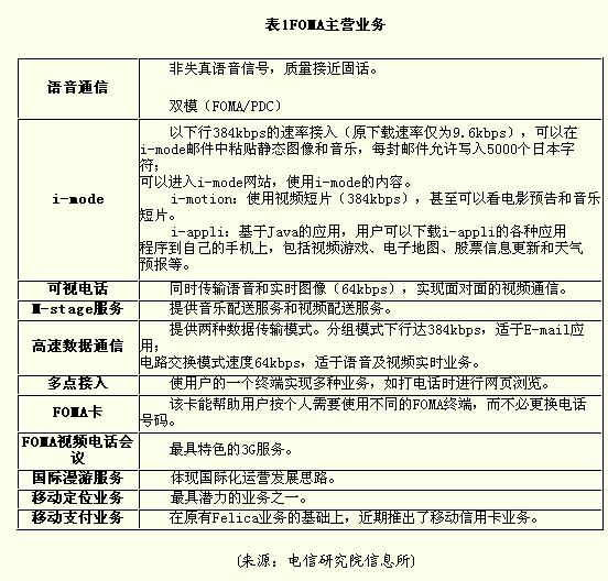DoCoMo在3G市場推出的品牌是FOMA,其在運營方面最大的特點是與其2G的i-mode業(yè)務緊密結合,使得FOMA的數據業(yè)務不僅從其原有PDC網絡i-mode數據業(yè)務獲得了繼承,而且在原有i-mode的基礎上增強了許多功能。NTT