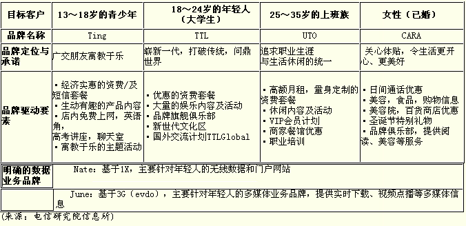 1x業(yè)務。KTF和SKT分別在2000年和2002年推出了EV-DO網絡服務,目前其覆蓋范圍最大達81個城市,可支持的數據傳輸速率達到2.4Mbps,可提供GPS、移動多媒體、虛擬通信、移動會議等多種服務。LGT目前還未開通EV-DO服務。 ★市場增長情況 目前,韓國移動電話用戶數達3700萬,移動電話普及率為77%,移動市場形成了由SKT、KTF和LGT三足鼎立的局面,其中SKT、KTF和LGT的用戶數分別為1900萬、1200萬和600萬。據ARC集團分析,2004年由于EV-DO業(yè)務在韓國推廣良好,韓國3G移動電話的銷量比2003年增長了117%。2005年EV-DO在3G市場的占有率達到34%,到2009年有望達到91%。 2004年1月以來,韓國三大移動運營商先后開放了號碼可攜帶服務,KTF與LGT等市場挑戰(zhàn)者利用這一政策不同程度地提升了自身的3G市場份額。目前,韓國SKT和KTF的EV-DO用戶市場份額分別為65%和35%。 韓國政府出于減輕高通專利費壓力及擴大國際市場空間等戰(zhàn)略考慮,于2000年向SKT和KTF發(fā)放了WCDMA牌照。2003年12月,SKT與KTF分別開通了覆蓋首爾地區(qū)的WCDMA網絡,韓國從而成為全球唯一的運營商同時運營兩種3G制式的國家。雖然韓國WCDMA服務商用化至今已有兩年多,但受多種因素的影響,用戶增長緩慢。到2005年11月底,僅發(fā)展用戶1.2萬戶。 ★業(yè)務發(fā)展情況 在業(yè)務發(fā)展方面,SK電訊的經驗值得一提。SKT把用戶按年齡段進行了細化,在全面研究每個年齡段用戶需求特點的基礎上,提供具有針對性的品牌服務,以鞏固并擴大用戶規(guī)模。目前,SKT主推Ting、TTL、UTO和CARA這4種客戶品牌,見表2。 作為韓國第二大移動運營商,KTF基于1X和EV-DO網絡,將其數據與增值業(yè)務劃分為Magic@、Fimm兩大綜合門戶品牌及Multipack、K-merce、VIZ、Telematics等多個子品牌。Magic@是KTF于2001年1月推出的最基本的數據與增值業(yè)務門戶品牌,所涵蓋的主要是以短信(定制、推送類)、MMS、鈴聲下載等為主的2.5G業(yè)務。無論是2G的CD-MAIS95用戶,還是cdma