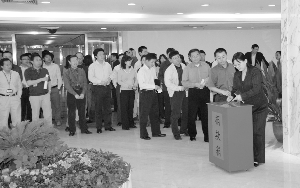 | 5月15日,證監(jiān)會工作人員為災區(qū)捐款 | 四川汶川地區(qū)發(fā)生強烈地震災害后,中國證監(jiān)會高度重視,緊急啟動應急預案,對做好證券期貨行業(yè)抗震救災工作,切實保障市場有序運行做出專門部署和安排。從北京的監(jiān)管機構望向災區(qū),雖路途遙遠但心同此地,雖安危有別但憂患與共,其中瞬間種種,尤為值得記取——災難中,讓我們一同堅強。