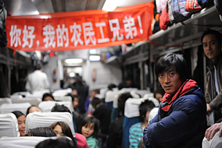 列車(chē)上的一位農(nóng)民工。劉續(xù)