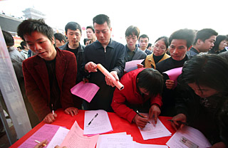 攝) | 有關(guān)部門預(yù)測,2009年,貴州因金融危機返鄉(xiāng)農(nóng)民工人數(shù)在130萬人至150萬人之間,占全省在外務(wù)工農(nóng)民工總數(shù)的20%以上,農(nóng)民增收面臨前所未有的艱難局面。有關(guān)專家認(rèn)為,大量農(nóng)民工返鄉(xiāng),對農(nóng)村、城鎮(zhèn)治安和社會穩(wěn)定構(gòu)成一定潛在威脅,特別是農(nóng)歷大年后,手中無錢的農(nóng)民工會再次外出務(wù)工,在外部就業(yè)形勢嚴(yán)峻的狀態(tài)下,將引發(fā)一系列社會問題。